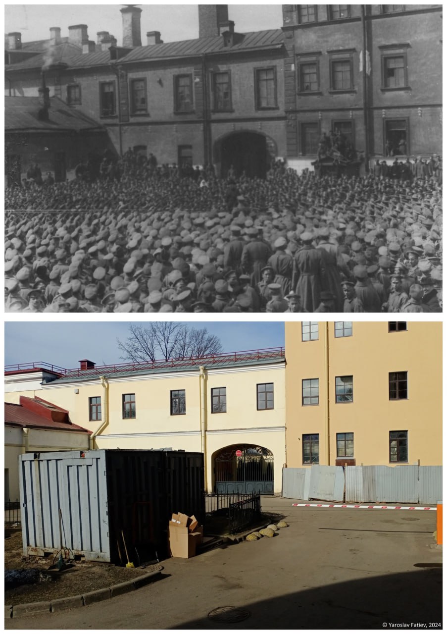 Выступление Керенского на митинге во дворе казарм запасного батальона Лейб-гвардии Семеновский полка / Задний двор станции метро "Звенигородская".