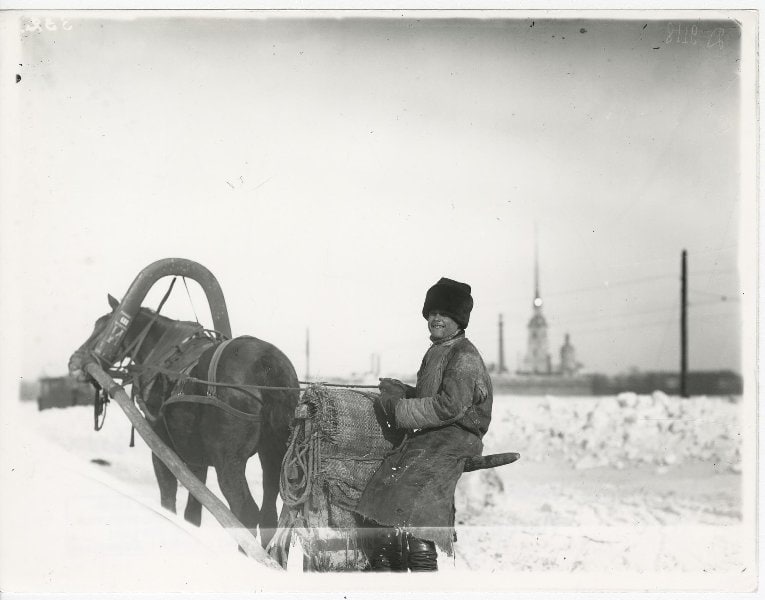 Ломовой извозчик на стрелке Васильевского острова, Санкт- Петербург, 1902 г