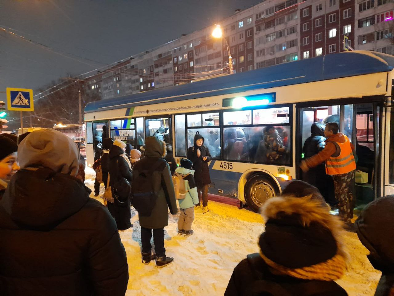 Подобная ситуация возникла и на остановке недалеко от площади Марка. Судя по кадрам, которые опубликовали в телеграм-канале «Новосибирск с огоньком», на остановке ждут транспорт несколько десятков человек.