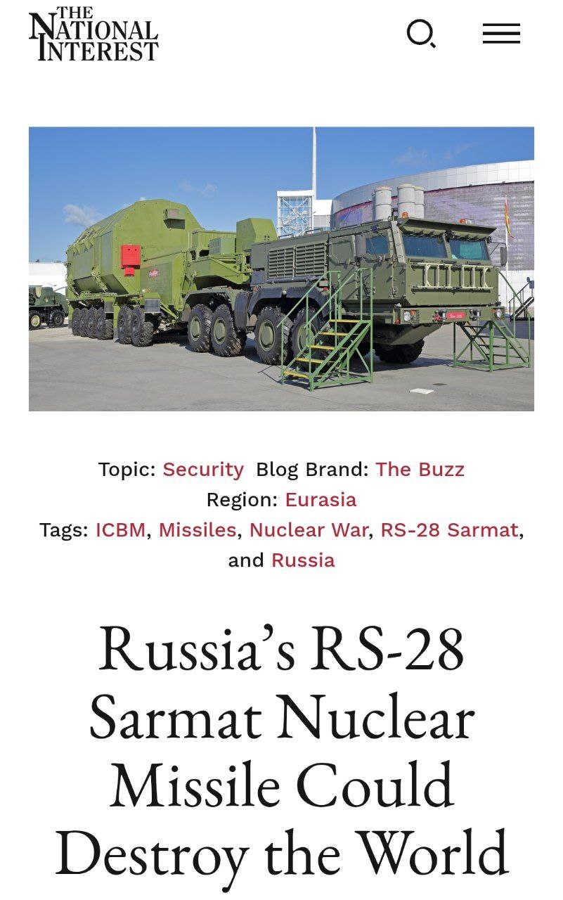 The National Interest: РС-28 «Сармат» является самой передовой баллистической ракетой в мире