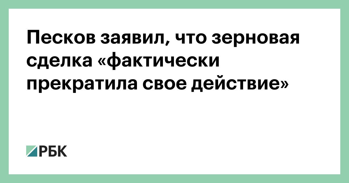 Договоренности по экспорту зерна из украинских портов «фактически прекратили свое действие сегодня». заявил пресс-секретарь президента России Дмитрий Песков.