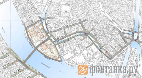 В принятом еще в нулевых Генплане мост так и «завис» в створе 22–23 линий, хотя даже во время обсуждений более 10 лет назад этот вариант перестал быть приоритетным. В проекте нового Генплана его перенесли на набережную Лейтенанта Шмидта между 17-й и 18-й линиями, для этого где надо установили зону транспортной инфраструктуры, определили коридор прохождения трассы через Ново-Адмиралтейский остров с выходом на Мойку.