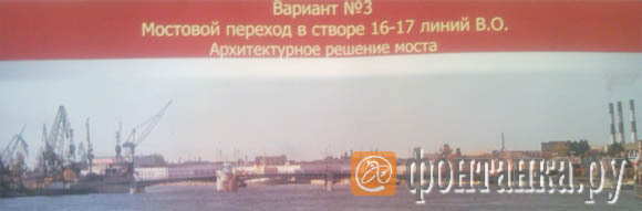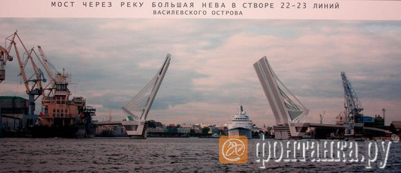 Примечательно, что с самого начала мост «двигали» по карте, решая, где он должен расположиться: в створе 22–23-й линий Васильевского острова, 24–25-й линий, 12–13-й линий, между 17-й и 18-й линиями. Где-то вмешивались вопросы стоимости, где-то — избыточной высоты, где-то — трассы прохождения судов. К тому же он конкурировал с проектом моста в створе Кожевенной линии. С заморозкой показалось, что спорить не о чем, но тут подоспел новый закон.