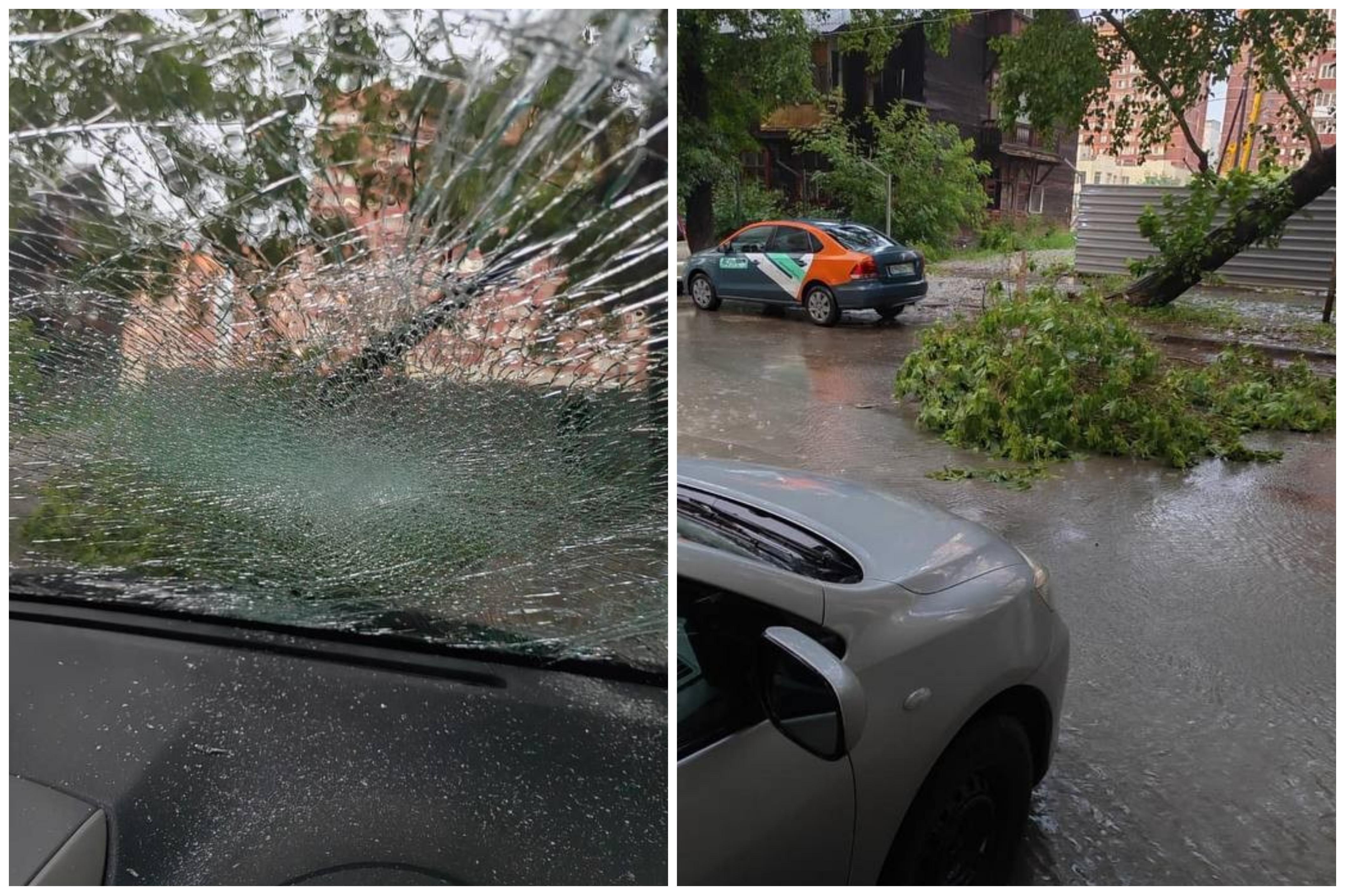 Лобовое вдребезги: в Новосибирске сильный ветер повредил машину