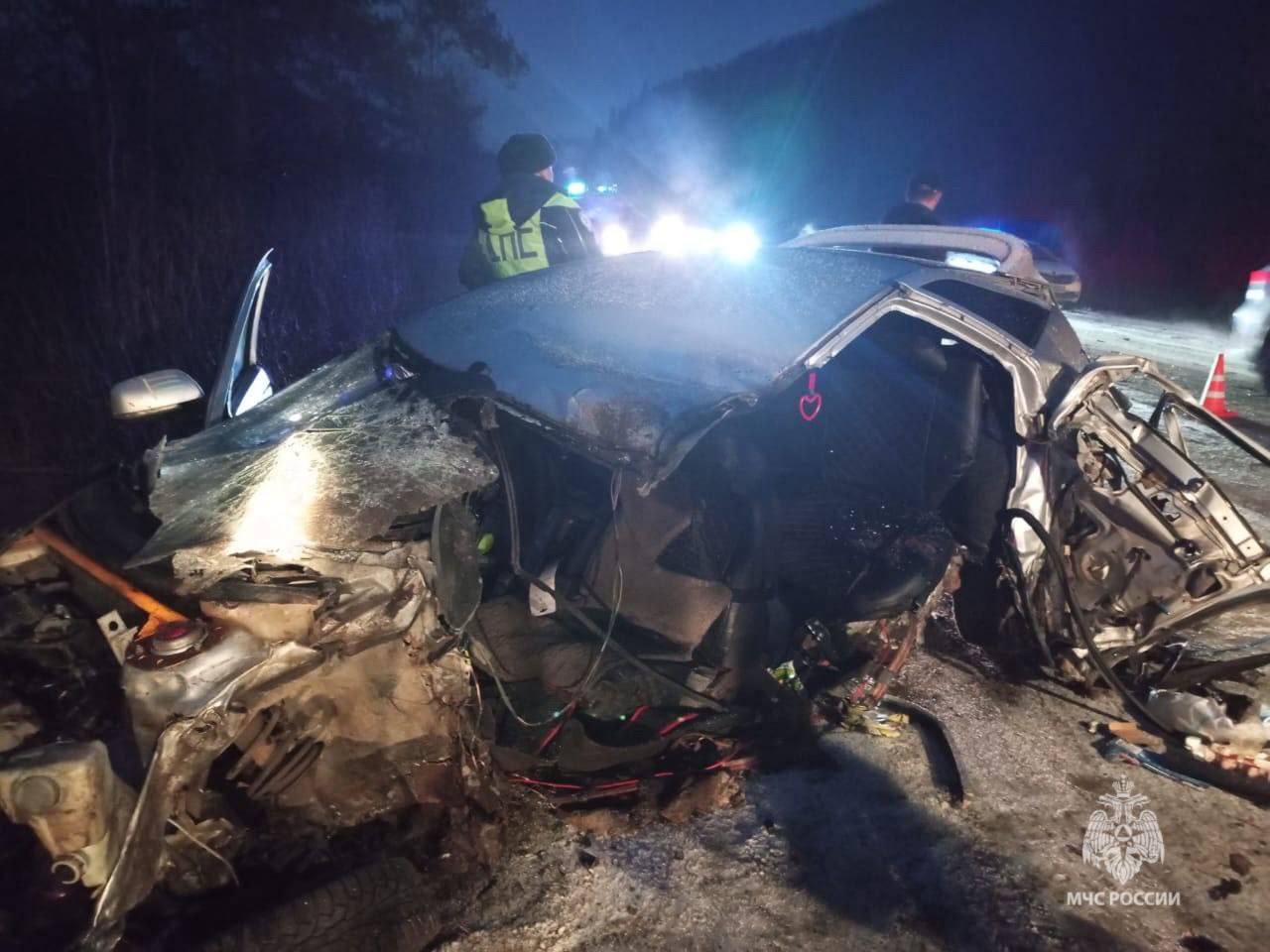 ВАЗ 2112 столкнулась с грузовиком. Погиб 40-летний отец. Детям и матери оказывается медицинская помощь.