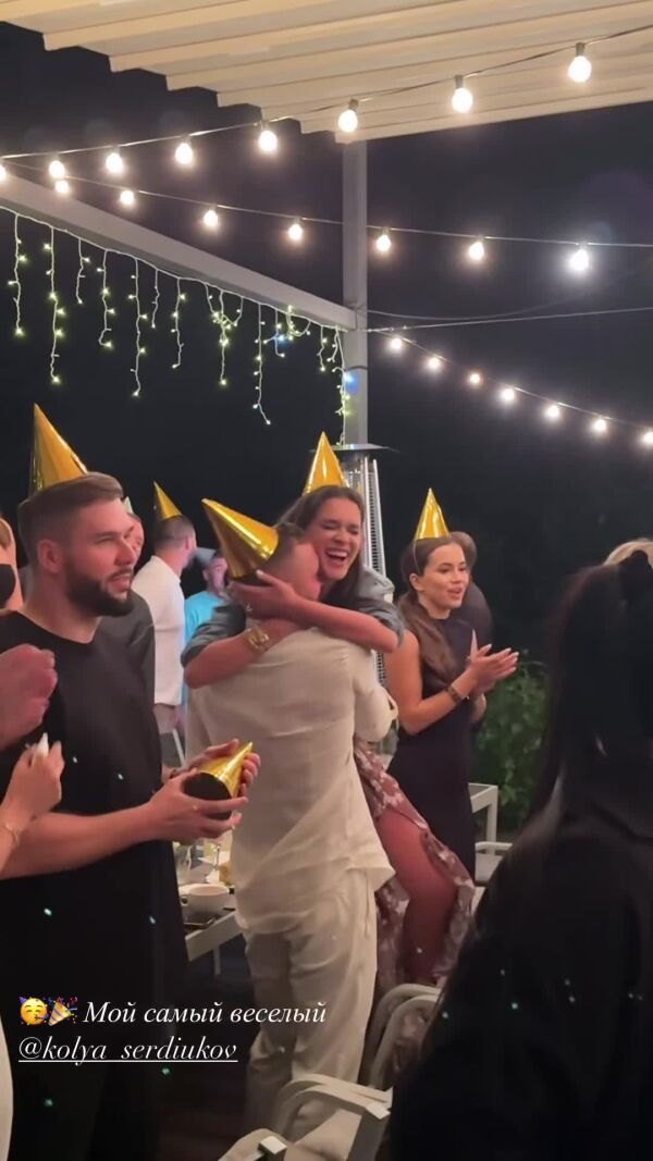 Ну а ближе к вечеру вечеринка стала еще веселее. Все искупались, восстановились, переоделись в более нарядные аутфиты, надели золотые колпачки, которые дети обычно носят на дне рождения, и продолжили отжигать.