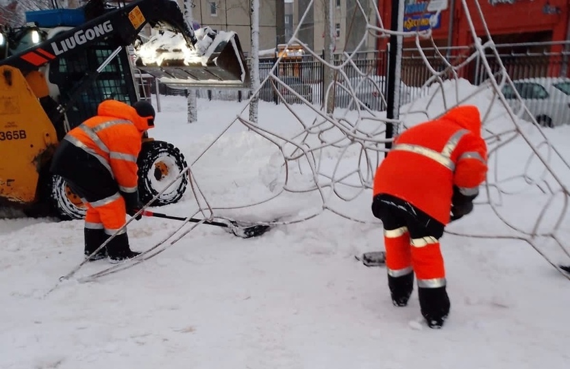 Коммунальщики расчистили от снега новогодние елки в Петрозаводске