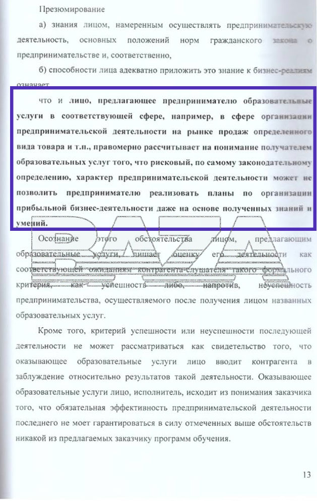 Как выводит эксперт, в законе нет критериев для оценки успешности лиц, которые прошли курсы Шабутдинова, поэтому и говорить о том, что он вводил кого-то в заблуждение, нельзя. По словам адвоката Шабутдинова Дмитрия Григориади, это заключение станет одним из ключевых доводов защиты.