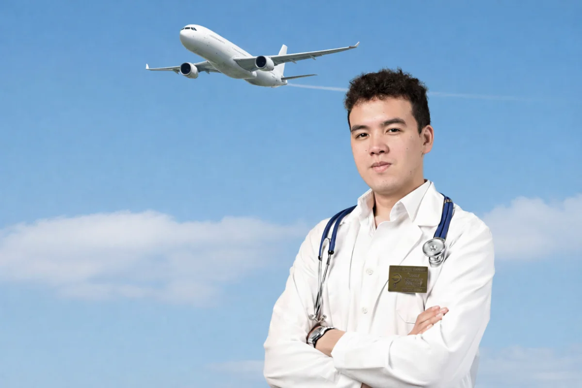 «Сначала я оглянулся, предполагая, что на борту могут находиться более опытные коллеги с большим клиническим опытом. Однако, так как никто не откликнулся, я принял решение взять ситуацию на себя. В первую очередь я провёл первичную оценку состояния: уровень сознания, проходимость дыхательных путей, дыхание, пульс, артериальное давление. Обеспечил безопасное положение пациента, сообщил экипажу о критичности ситуации и взял дальнейшее оказание помощи под контроль. Были проведены базовые неотложные мероприятия в условиях борта самолёта: контроль и поддержание проходимости дыхательных путей, мониторинг жизненно важных показателей, оксигенотерапия при наличии возможности, противосудорожные мероприятия в рамках доступных средств, а также постоянное наблюдение за состоянием пациента с коррекцией тактики по ситуации. На фоне оказанной помощи состояние удалось частично стабилизировать, судорожный синдром был купирован, однако пациент оставался в тяжёлом состоянии и нуждался в срочной медицинской помощи после посадки»,— вспоминает Динмухаммед.