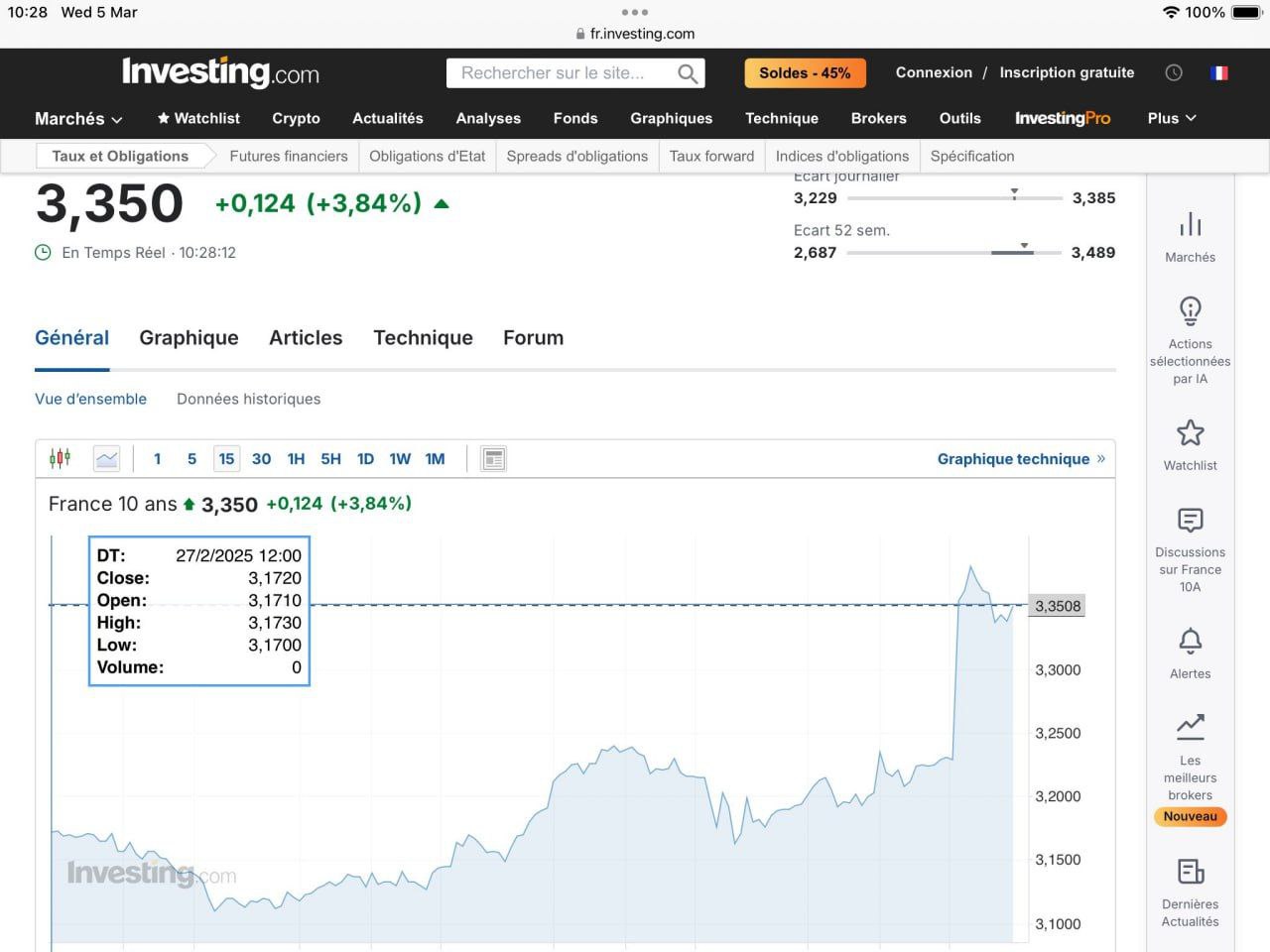❗️Занятая вчера президентом Франции Макроном и премьером Байру позиция по вложению денег в поддержку военных действий на Украине при игнорировании всех бюджетных ограничений привела к резкому росту ставки 10-летних государственных облигаций, что грозит Франции не только ростом дефицита бюджета, но и делает реальной угрозу банкротства страны