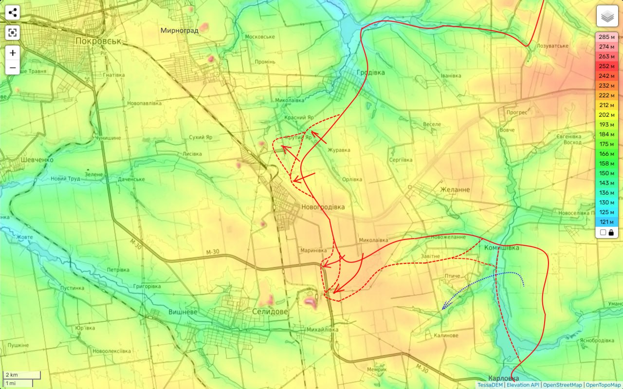 Таким образом нам за вчера и за ночь удалось вклиниться в оборону противника на Новогродовском участке южнее и севернее города. Особо неприятным для армии киевского режима стал наш заход в н.п. Крутой Яр, открывающий нам неплохие перспективы в направлении Мирнограда.