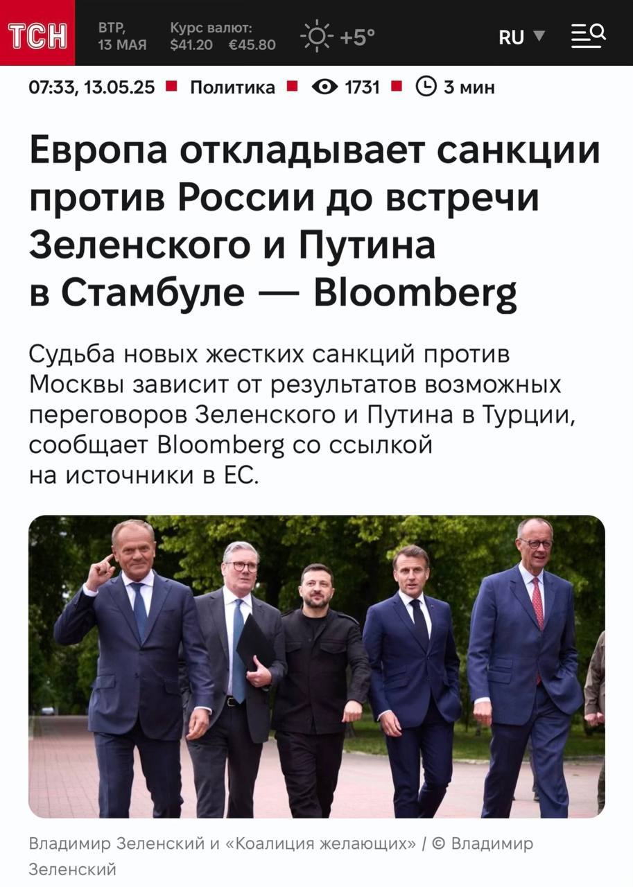 🔹13 мая утро: теперь европейские лидеры готовы ждать до переговоров в Стамбуле.