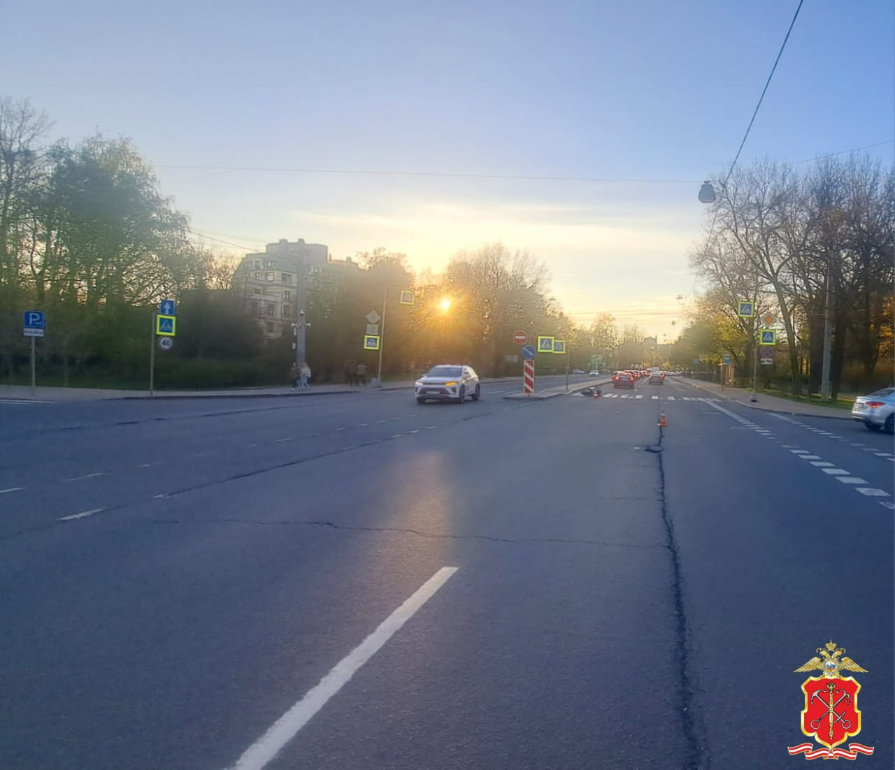 Полиция устанавливает обстоятельства серьезной аварии с мотоциклистом в Петроградском районе Петербурга. Поворот автомобиля отправил байкера в реанимацию.