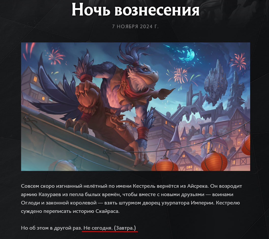 выпустила продолжение комикса «Ночь вознесения», в котором повествуется о «человеке-петухе» Кестреле