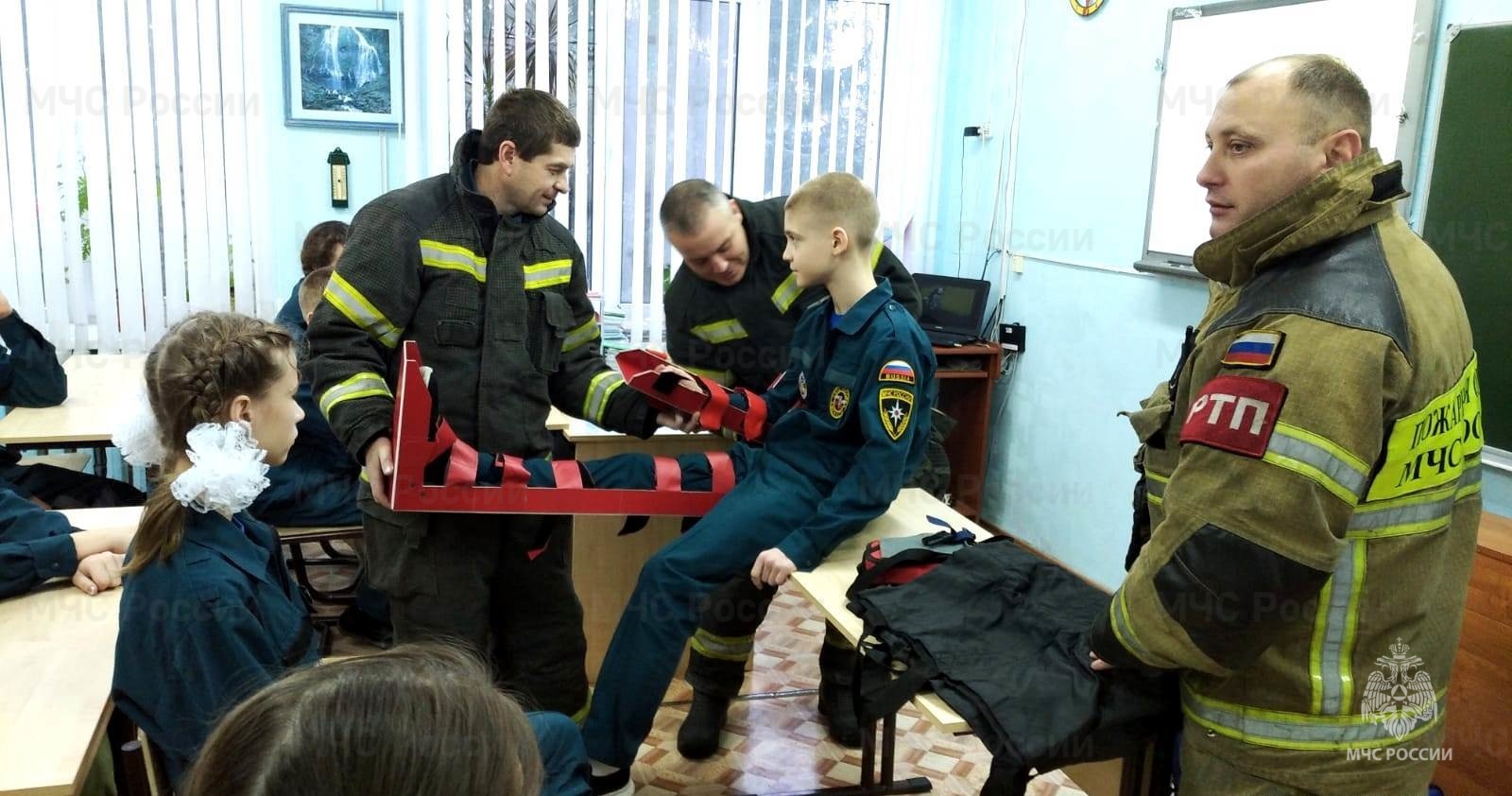 На прошлой неделе заместитель начальника государственного пожарного надзора по Узловскому, Киреевскому районам и городу Донской Алексей Ерзаулов посетил донской кадетский класс МЧС России.