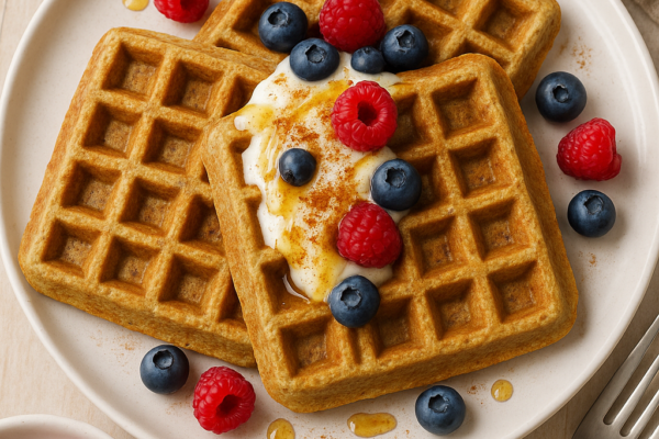 Рецепт: вафли из зелёной гречки с финиками и корицей