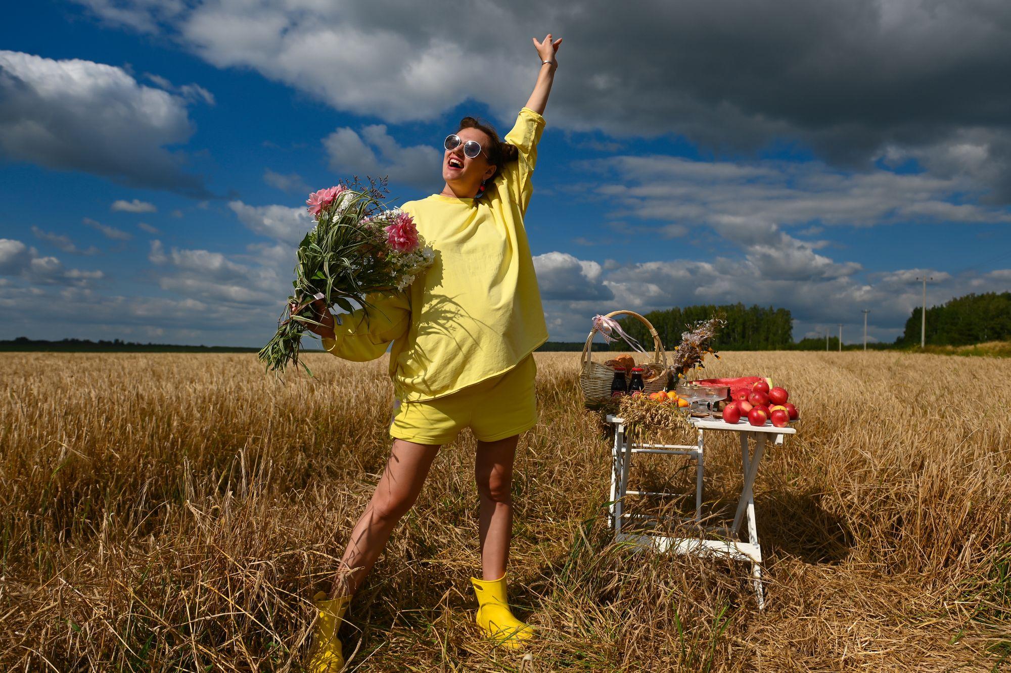 Взяли декор, вкусняшки и погрузили в машину столько всего, что казалось, будто мы отправляемся в гастрономическую экспедицию. Выбрали красивую локацию — пшеничное поле под Арамилем. Голубое небо с облаками создало необходимое настроение, — рассказала Оксана Плохих.