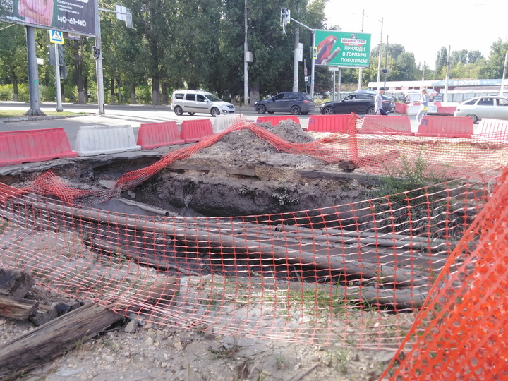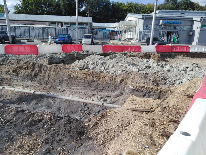 Третий месяц стопорятся строительные работы по линии будущего скоростного трамвая № 8 в районе площади Орджоникидзе. В начале лета на этом отрезке демонтировали рельсошпальную решетку и опоры, но по сей день вместо новых трамвайных путей - горы грунта и ямы, залитые водой.