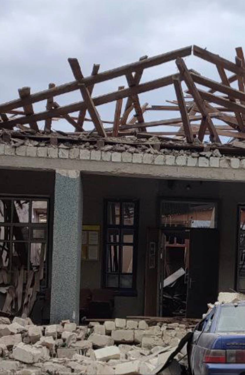Здание соцфонда в Нижних Серогозах (Херсонская область), по которому ВСУ ударили из РСЗО.