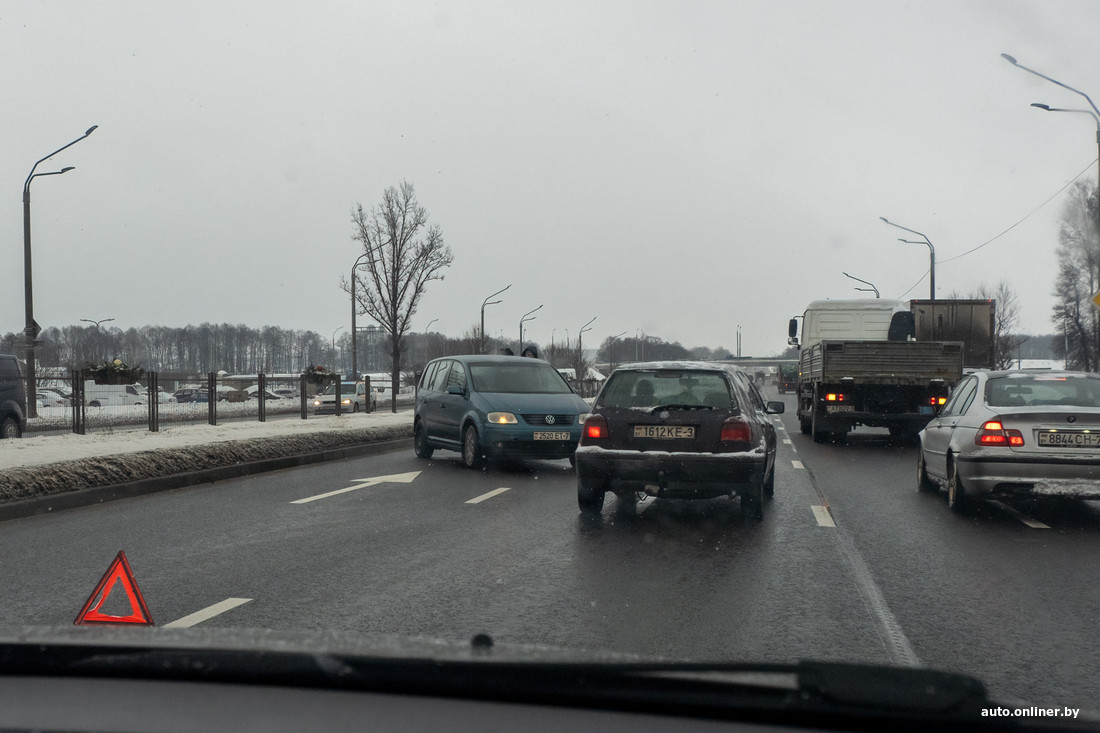 — Когда вот так занята бóльшая часть ширины дороги — это неплохой вариант. Как минимум в двух полосах транспорт снижает скорость, люди ищут возможность перестроиться, все замедляется. Хуже, когда перекрыта только одна полоса, а по двум другим несутся машины. Очень важно, чтобы водители в проблемной полосе как можно раньше включали аварийную сигнализацию, сообщая остальным о проблеме, — напоминает Краснов.