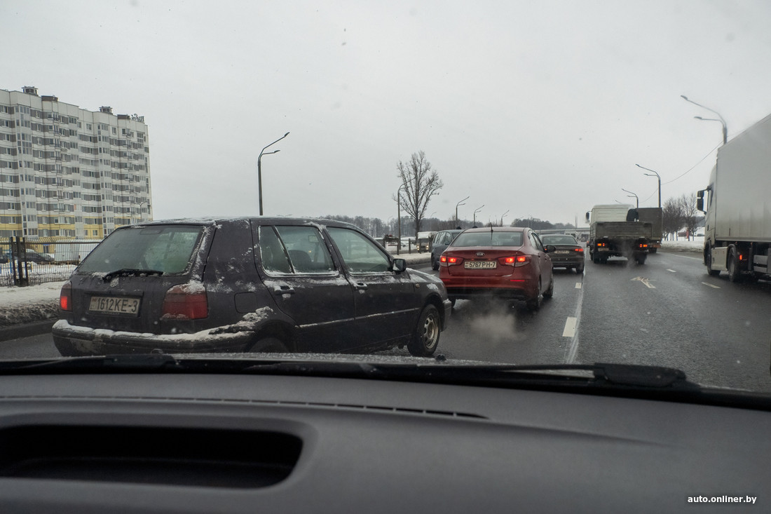 Это миф, что в правой полосе все едут медленно, а в левой, дескать, препятствий не случается. На кольцевой мы нагнали технику дорожников, которая следовала вдоль разделительного ограждения с малой скоростью — вероятно, убирала проезжую часть. И машина прикрытия есть, и прицеп у нее специальный, снижающий тяжесть последствий в случае столкновения. Вот только испытывать его все равно никому не хочется.