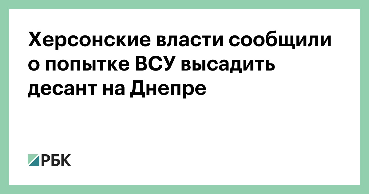 Украинская армия попыталась ночью высадить десант с двух катеров на левом берегу Днепра возле села Казачьи Лагеря, удерживаемого российскими войсками, сообщил в телеграм-канале врио губернатора Херсонской области Владимир Сальдо.