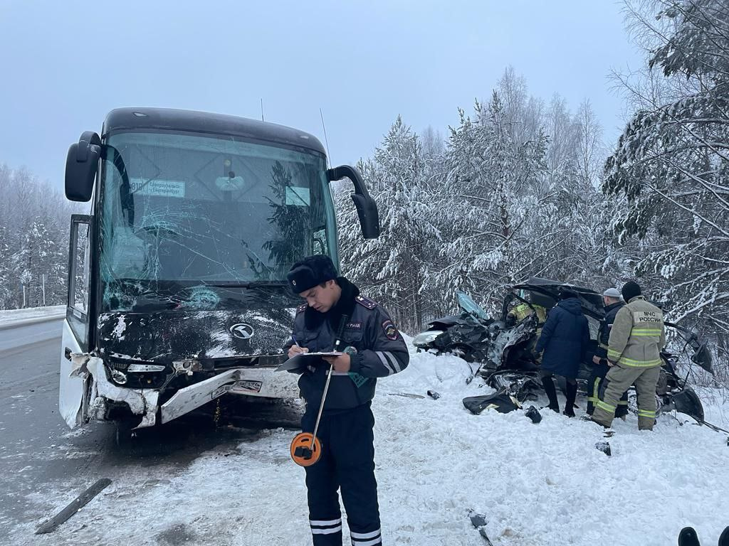 На Серовском тракте легковушка влетела в автобус. Погибли четыре человека, в том числе ребенок