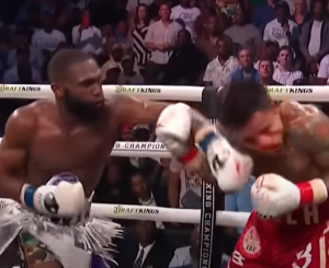 На момент остановки Джарон лидировал на записках всех судей со счётом 89-82 (дважды) и 88-83.