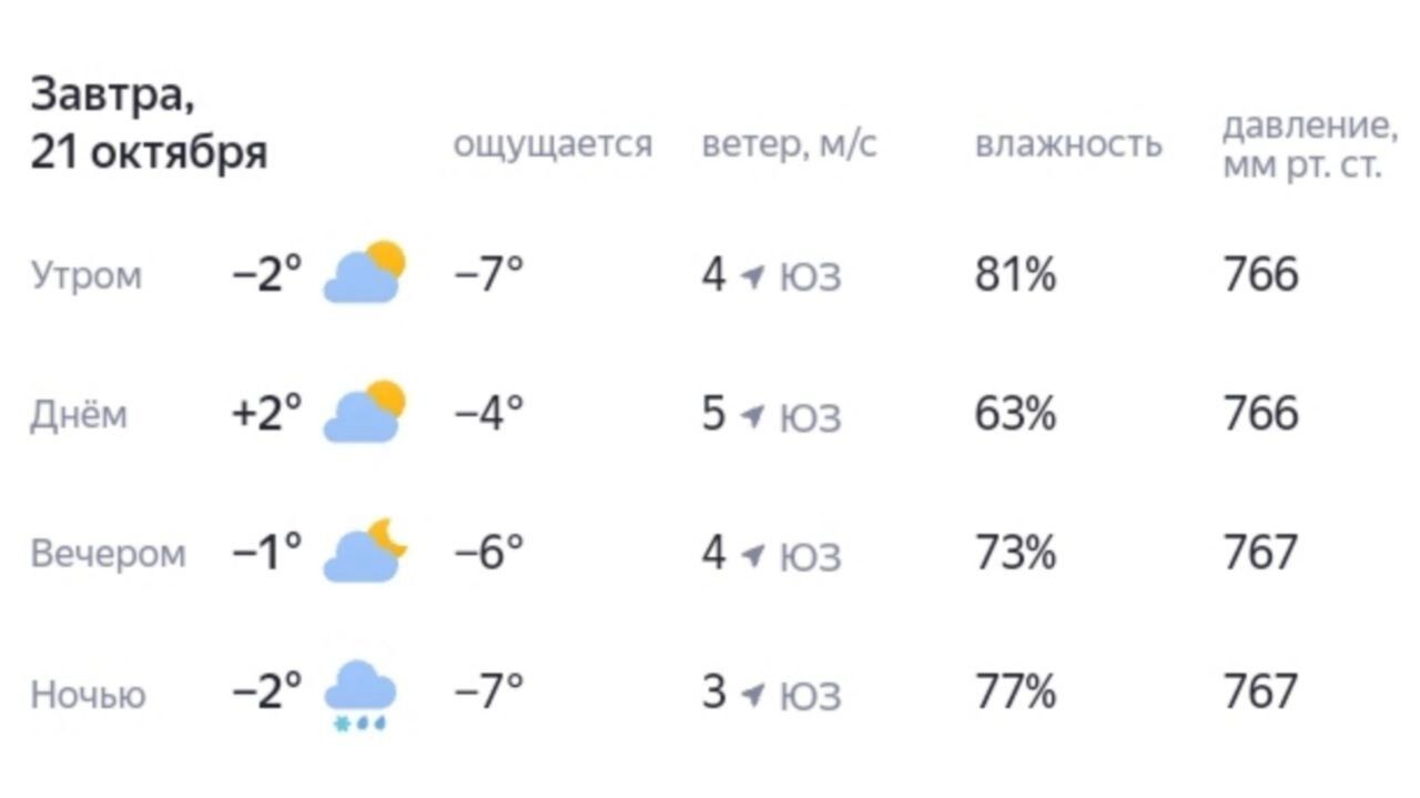 Прогноз погоды в городах Югры на 21 октября