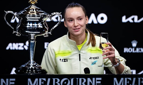 Казахстанской теннисистке Елене Рыбакиной налили бокал шампанского прямо на пресс-конференции после ее победы на Australian Open-2026, сообщает Sports.kz.