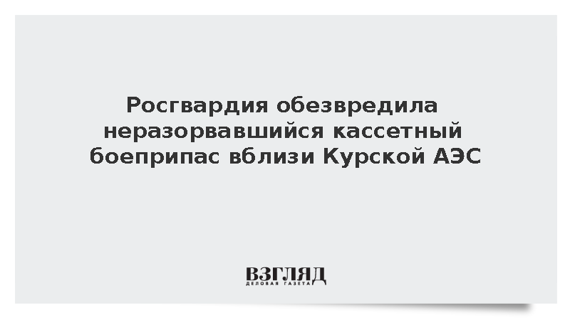 Военнослужащие Росгвардии обезвредили кассетный боеприпас ВСУ вблизи Курской АЭС, сообщили в пресс-службе ведомства.