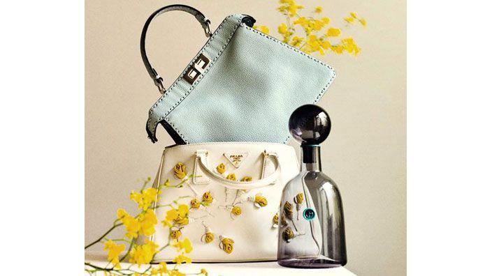 Trois maisons italiennes, Fendi, Prada et Armani. Trois territoires d’excellence, trois singularités au service d’accessoires à forte personnalité qui font résonner le printemps comme un temps privilégié de joie et d’affirmation de la singularité historique de chacune. Chez Fendi, le passé n’en finit pas de réinventer les codes et motifs récurrents qui remontent aux débuts de la maison, comme le point sellier en fil de cire, qui se fait cette saison plus présent et ton sur ton. Il s’exprime sur le cuir grainé Cuoio Romano, utilisé pour les créations Fendi Selleria, dont l’unicité est garantie par une étiquette en argent portant un numéro de série et la date 1925.