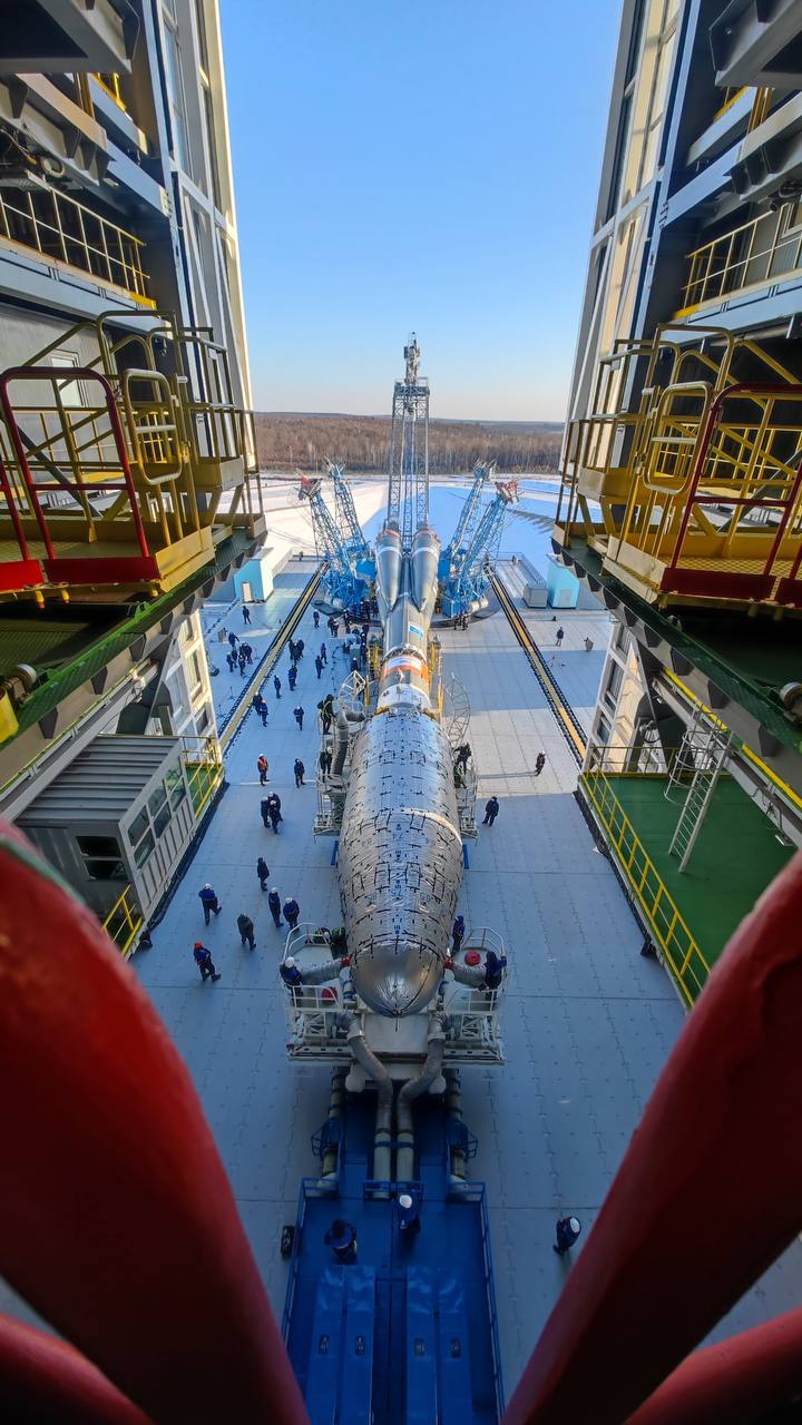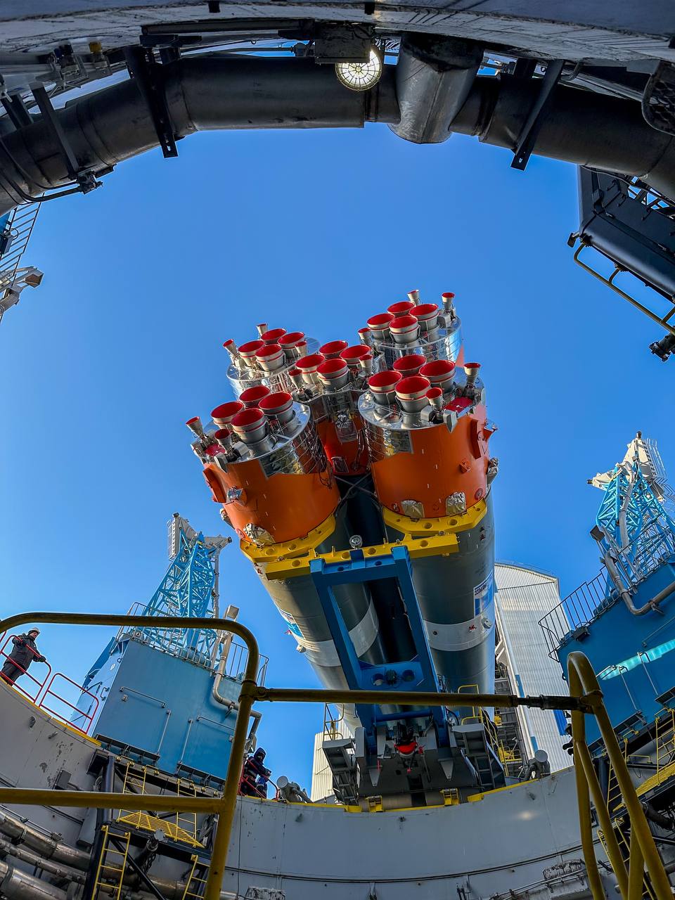 «После установки носителя в вертикальное положение специалисты Роскосмоса продолжили готовить его к пуску», – гласит сообщение.
