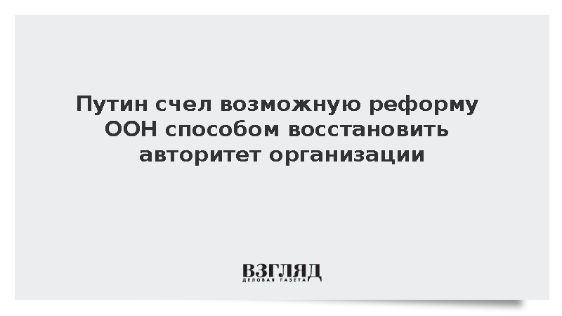 «Россия и Китай выступают в пользу реформы Всемирной организации», – заявил он. Президент пояснил, что реформа позволит ООН восстановить свой авторитет, организация должна «соответствовать современным реалиям».