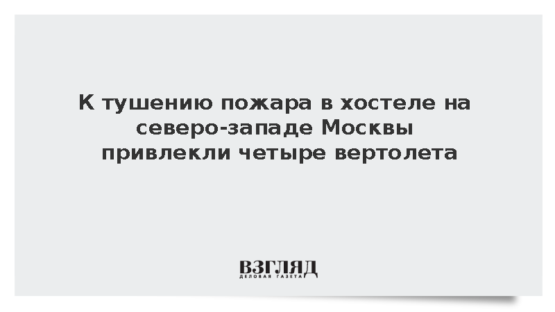 Четыре вертолета, включая три Ка-32 и один Ми-26, задействовали в борьбе с пожаром в здании с хостелом на площади 2 тыс. кв. метров на северо-западе Москвы.