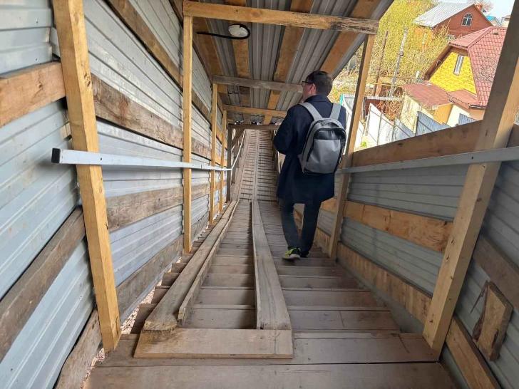 От новостройки мы завернули направо и попали во временный наземный переход. Лестница уходила все ниже и ниже. И вот она – «деревня» Нижегородка.