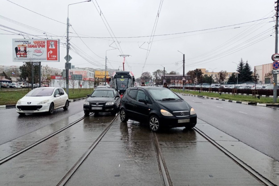 На улице Демидовская потина в Туле две легковушки устроили ДТП на трамвайных путях и спровоцировали задержку общественного транспорта сегодня утром, 9 октября.