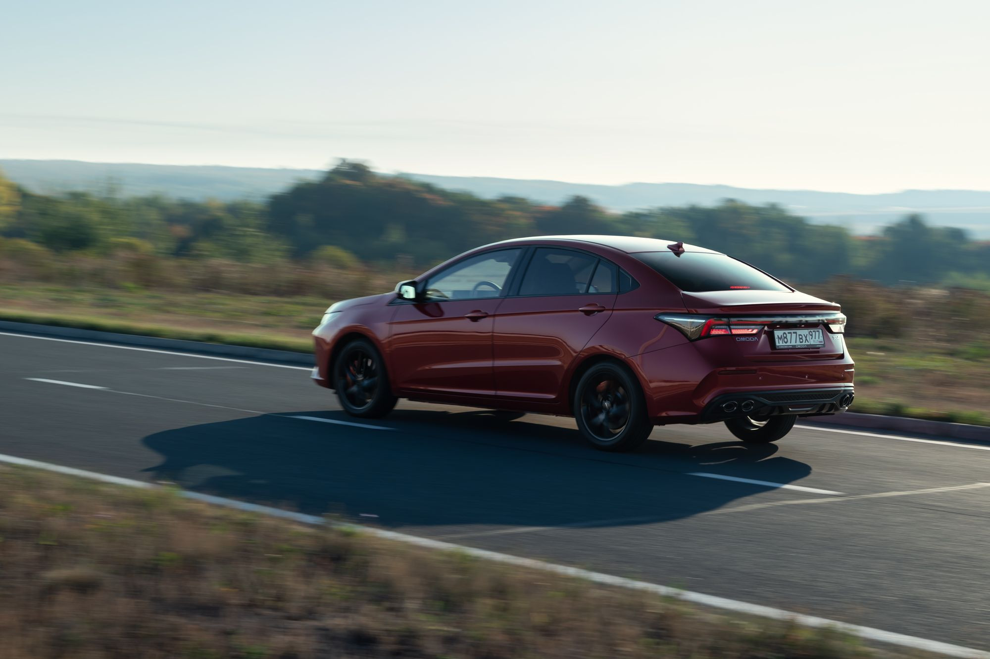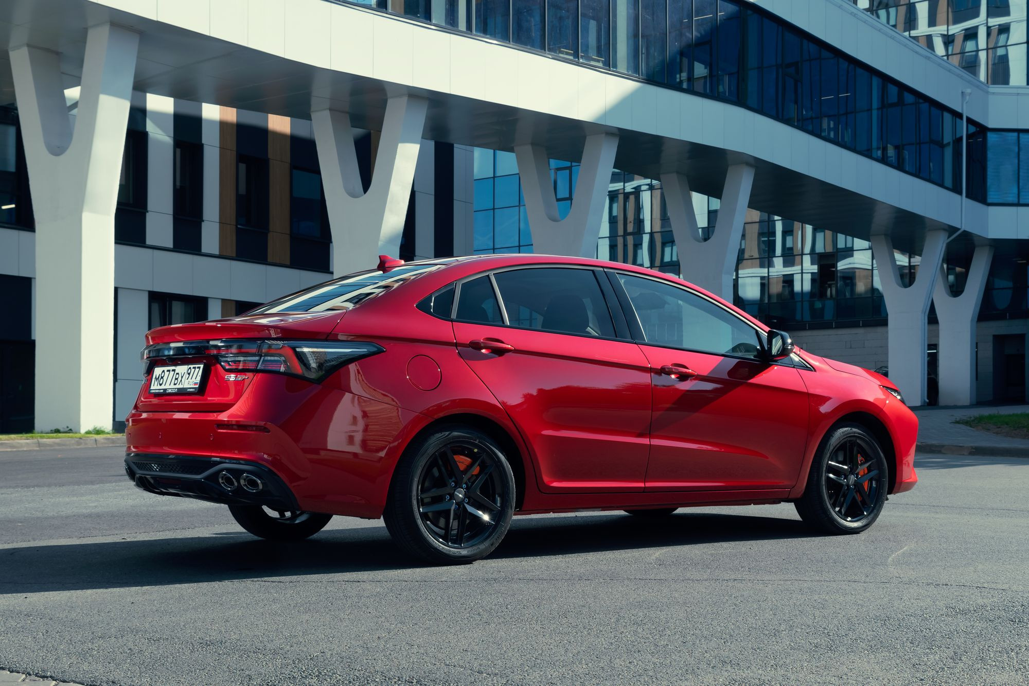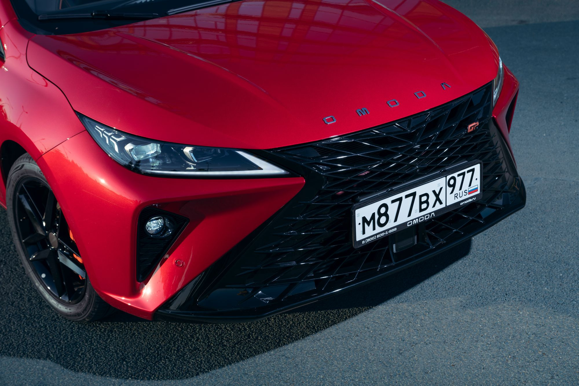 Если плясать от этого «новояза», то Omoda S5 GT прекрасно вписывается в легендарную аббревиатуру. На фоне обычного седана S5 версия GT смотрится почти как самостоятельная модель. Дизайнеры не успокоились, перекроив решетку радиатора и бамперы, и заставили технологов расщедриться на новую головную оптику и даже капот с крыльями. Сзади отличий от обычной «пятерки» меньше – это пара интегрированных в бампер сдвоенных выпускных патрубков, которые на деле, увы, оказываются бутафорией: на самом деле, конденсат парит из выведенной слева под бампер выхлопной трубы.