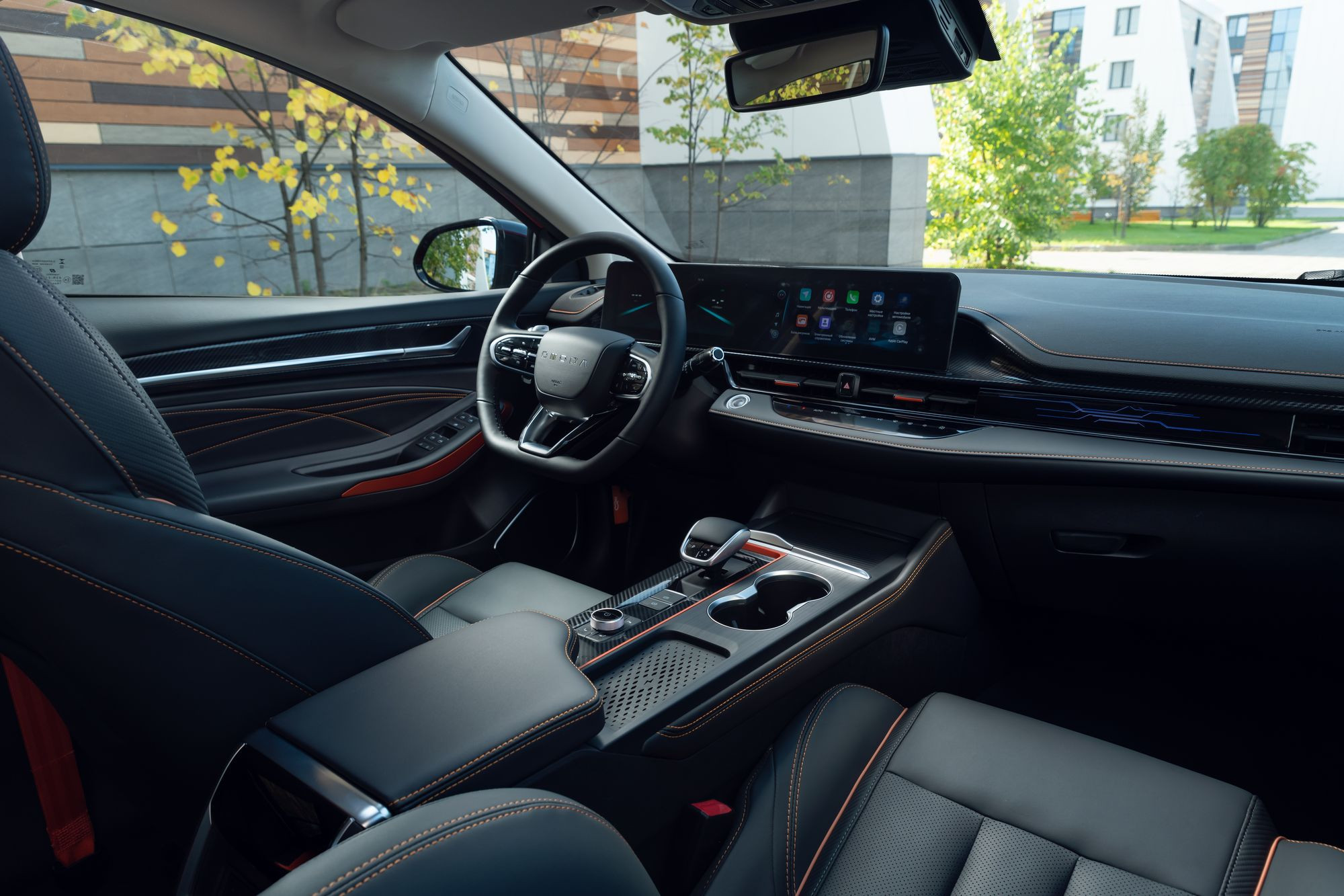 Про внешность и мотор вы уже все поняли, так что поговорим об интерьере: он радикально отличается от традиционной Omoda S5. Вместо разнесенных дисплеев панели приборов и центральной консоли здесь «моноблок» из двух 10,25-дюймовых мониторов. Мультимедиа синхронизируется с мобильными устройствами через Apple CarPlay и Android Auto. Для любителей гаджетов предусмотрены два USB-разъема спереди и один сзади, а также розетка на 12 В.