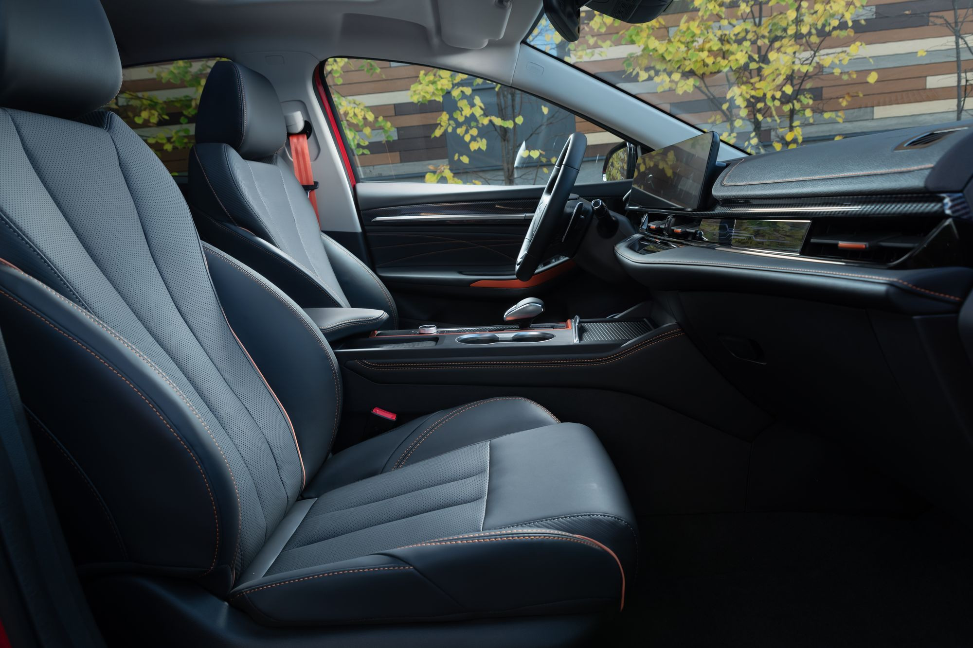 Селектор коробки передач позаимствован от кроссовера С5, тут и там рыжие декор-вставки, контрастная прострочка, и даже ремни безопасности вкусного апельсинового оттенка, а отделка экокожей смотрится побогаче. В движении GT ненамного, но тише – мотор прослушивается хорошо, а вот аэродинамические шумы снижены благодаря передним стеклам, они тут 4-миллиметровые.