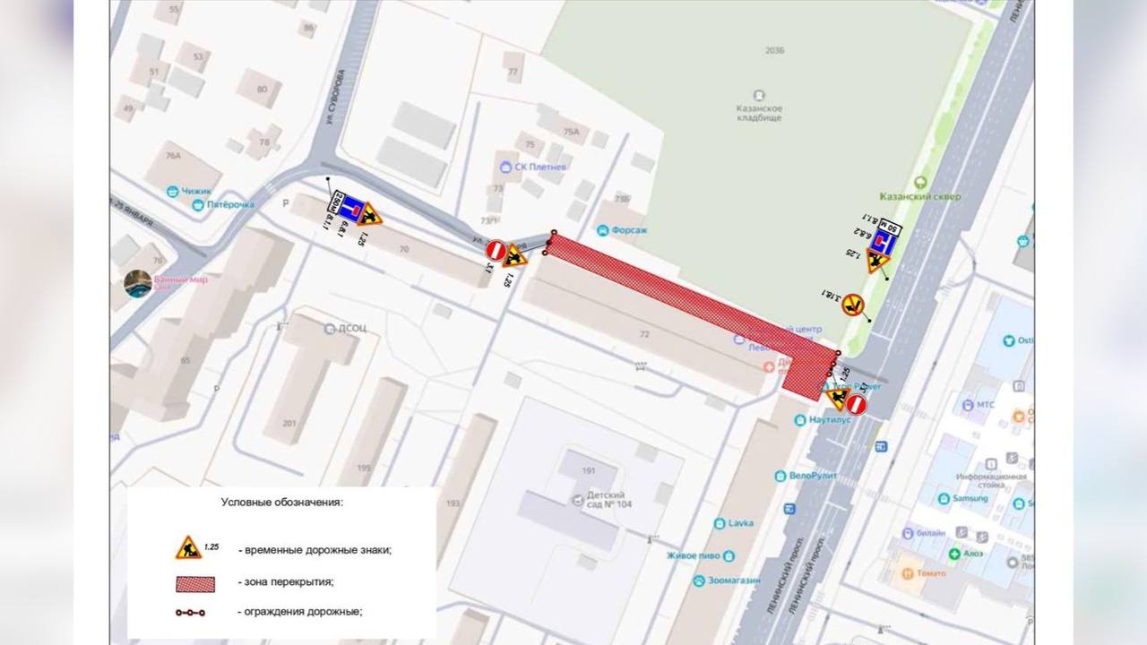 Часть улицы 25 Января перекроют с 6:00 до 18:00 в понедельник, 30 июня. Об этом предупредили в управлении дорожного хозяйства Воронежа.