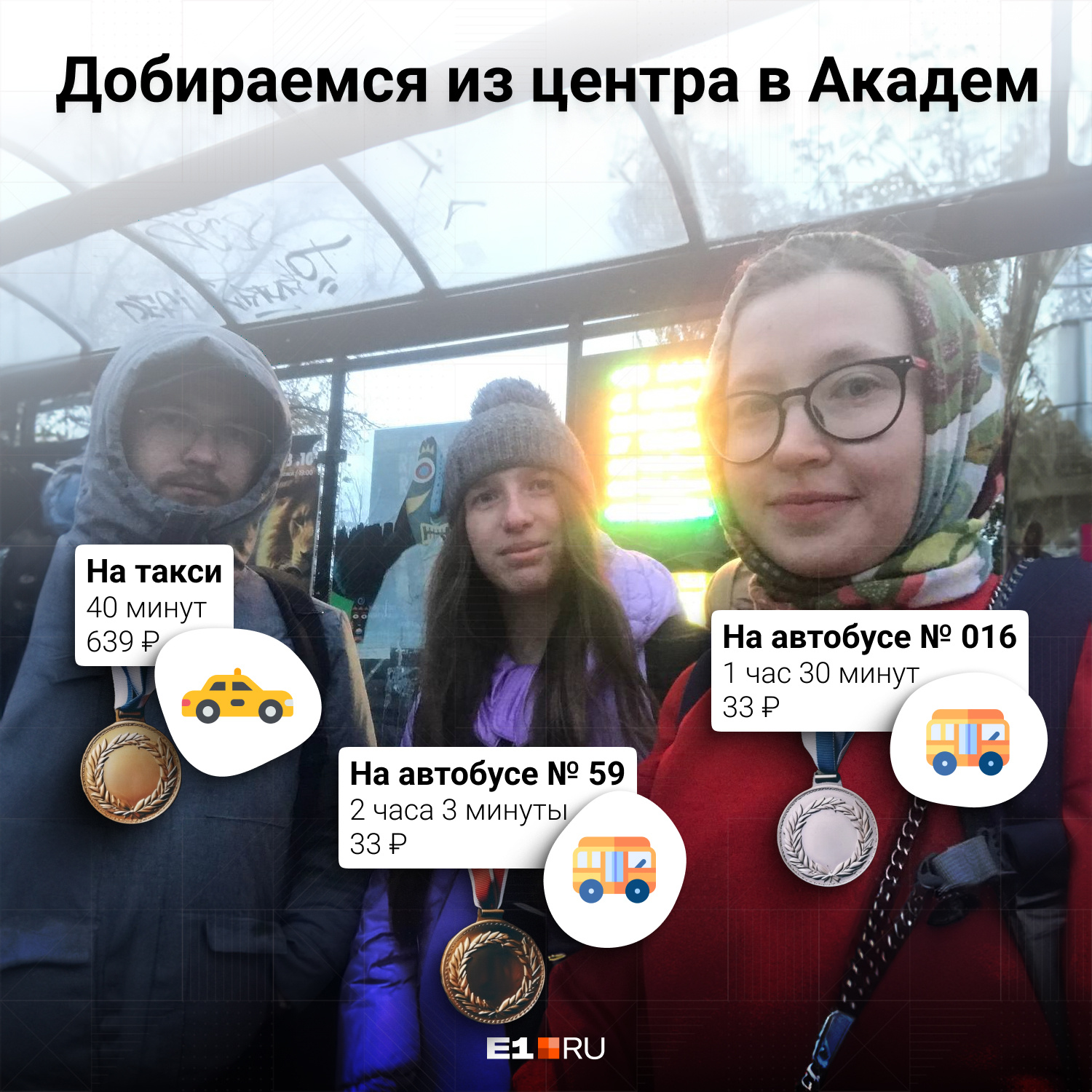 Накануне редакция E1.RU устроила очередной дорожный эксперимент: журналисты Владислав Лоншаков, Ирина Порозова и Елена Аносова выбирались из центра Екатеринбурга в Академический тремя разными маршрутами: на такси, тесном пазике и большом автобусе.