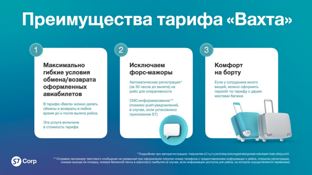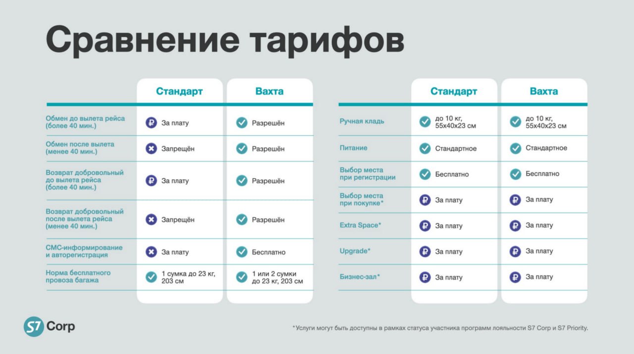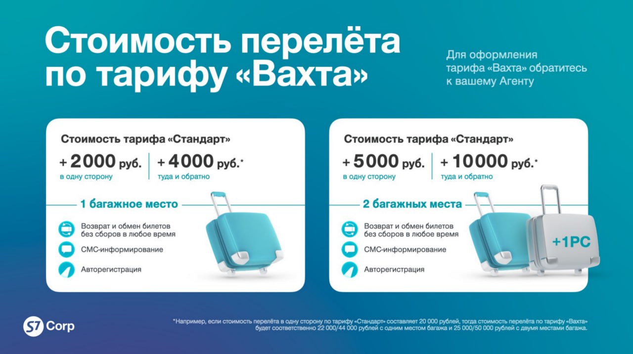 ✈️ У S7 Airlines в сервисе для юридических лиц S7 Corp появился новый корпоративный тариф — «Вахта»