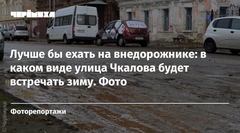По улице Чкалова, которую решили открыть для транспорта, лучше, конечно, ехать на внедорожнике. Закрытые раскопы оказались благоприятным местом для осенней слякоти.