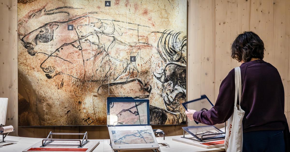 «Les scientifiques disent souvent que la grotte leur parle, et nous avons voulu mettre les visiteurs dans la peau de celui qui recherche », explique Christelle Guiraud, commissaire de l’exposition qui déploie jeux et dispositifs ludiques qui séduiront. On peut ainsi « travailler » sur l’étude des feux de la galerie des Mégacéros, observer les empreintes de celle des Croisillons, écouter les sons de la grotte avec un casque, faire « parler » un excrément fossilisé ou tenter de comprendre comment les dessins furent réalisés.