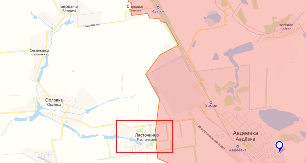 Ряд источников сообщают о переходе н.п. Ласточкино к западу от Авдеевки под контроль ВС РФ. В данный момент проводится зачистка посёлка.