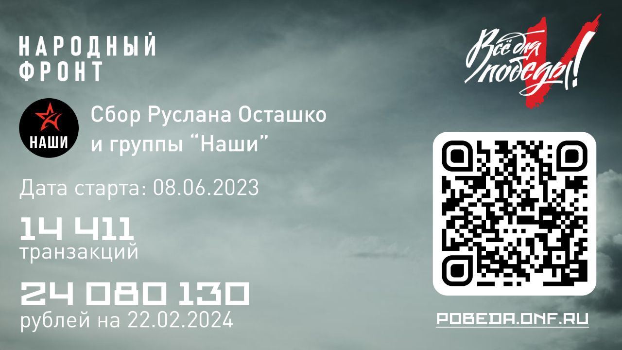 ❤️ Сбор Руслана Осташко и группы «НАШИ» — это почти 14.500 переводов в пользу российских бойцов