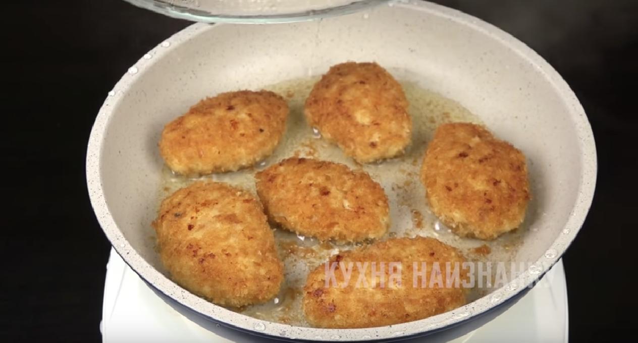 Обжариваю котлеты на растительном масле до румяной корочки. Затем переворачиваю, накрываю крышкой и на среднем огне готовлю ещё несколько минут.