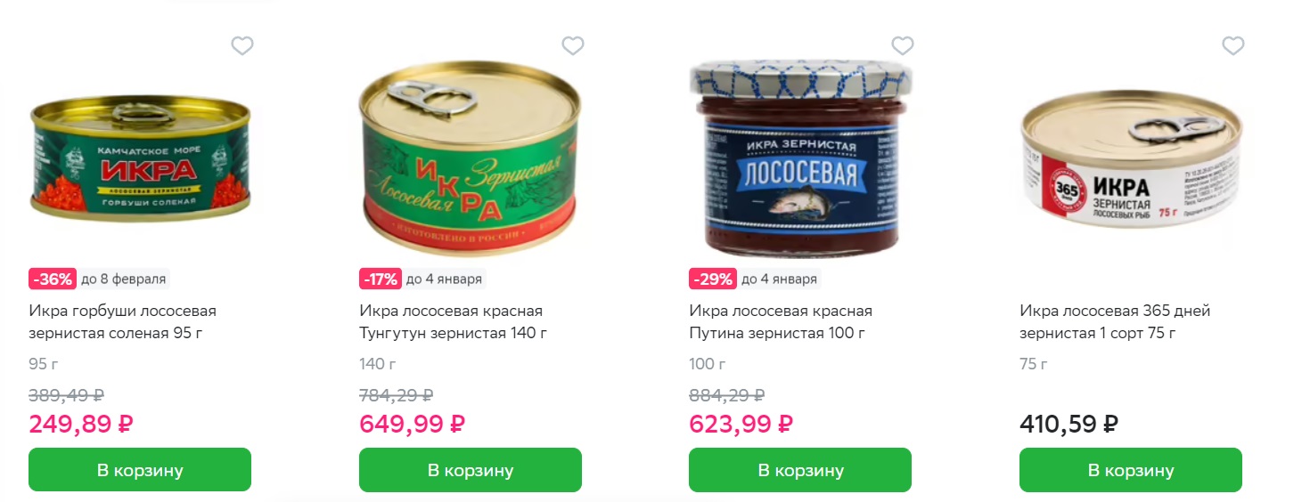 - Икра горбуши (Камчатка) — 680 рублей