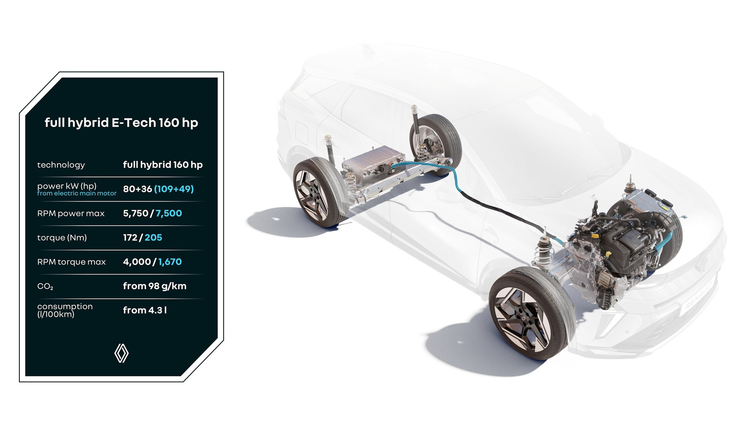 Максимальная совокупная мощность силовой установки выросла с 143 до 160 л.с., благодаря чему Captur теперь набирает первую «сотню» за 8,9 с, Symbioz — за 9,1 с вместо прежних 10,6 с, при этом паспортный расход топлива снизился с 4,7 до 4,3 л/100 км, а уровень выбросов CO2 в атмосферу сократился примерно на 40% до 98-102 г/км. Новая силовая установка позволила вдобавок увеличить допустимую массу буксируемого прицепа с 750 до 1000 кг и принесла в салоны Captur и Symbioz более компактный селектор АКП.